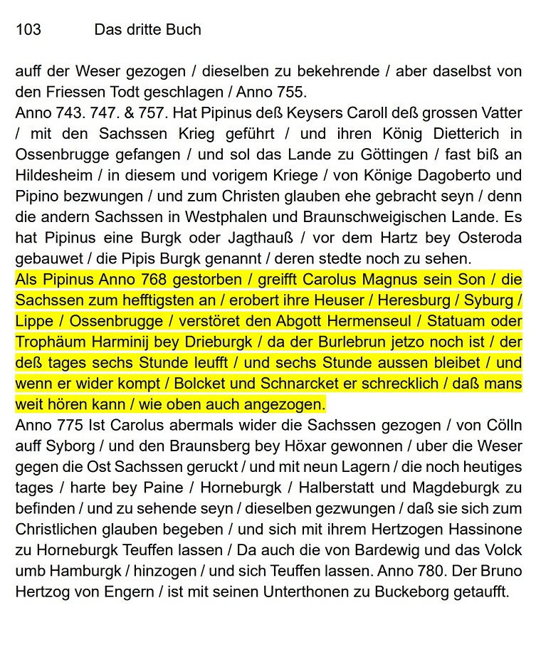 Nicht berücksichtigt, jedoch ein sehr wichtiger Hinweis über den Bullerborn nahe der Iburg! In der selben Schrift wird geschrieben auf Seite 79