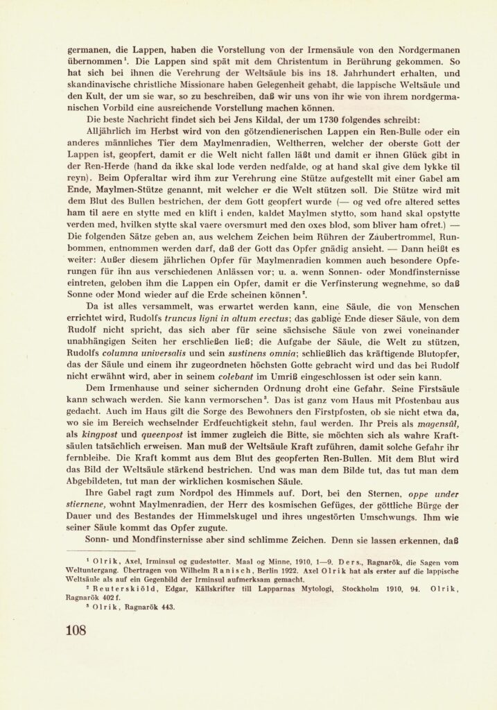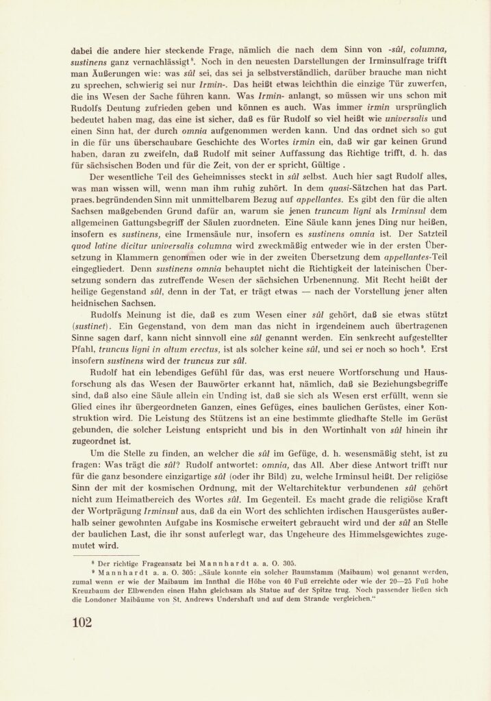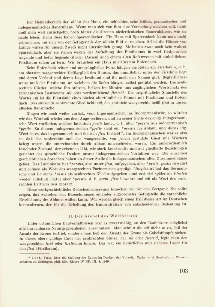 Dem Verfasser gelingt es durch interessante sprachgeschichtliche, mythologische und baugeschichtliche Untersuchungen klarzustellen, wie wir uns die Irminsul zu denken haben.